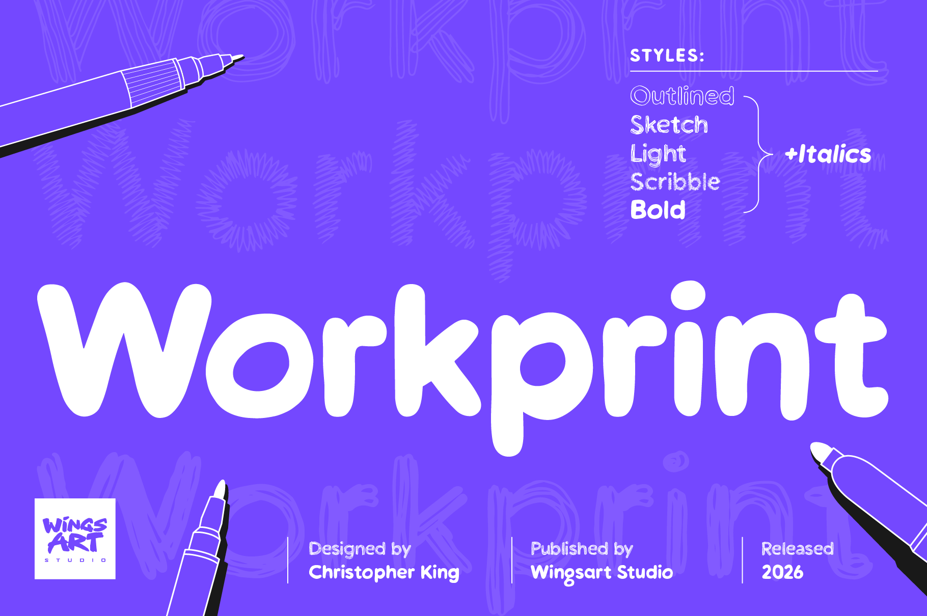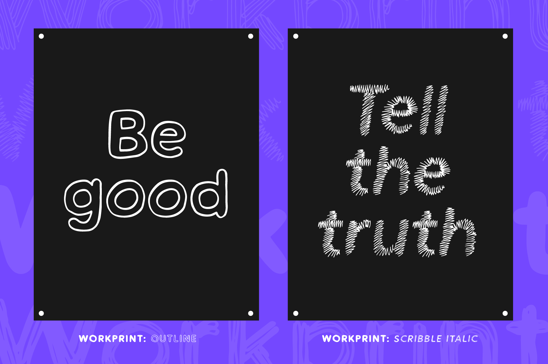 Starting from the skeleton of a standard sans design, Workprint has been re-drawn with a range of different pens that each bring their own characteristics to the drafting table. This first release offers a range of visual styles, from Scribble to Outlined to Bold, that provide versatility in text and display sizes, with future additions working from the same blueprint to maintain consistency across your design space.